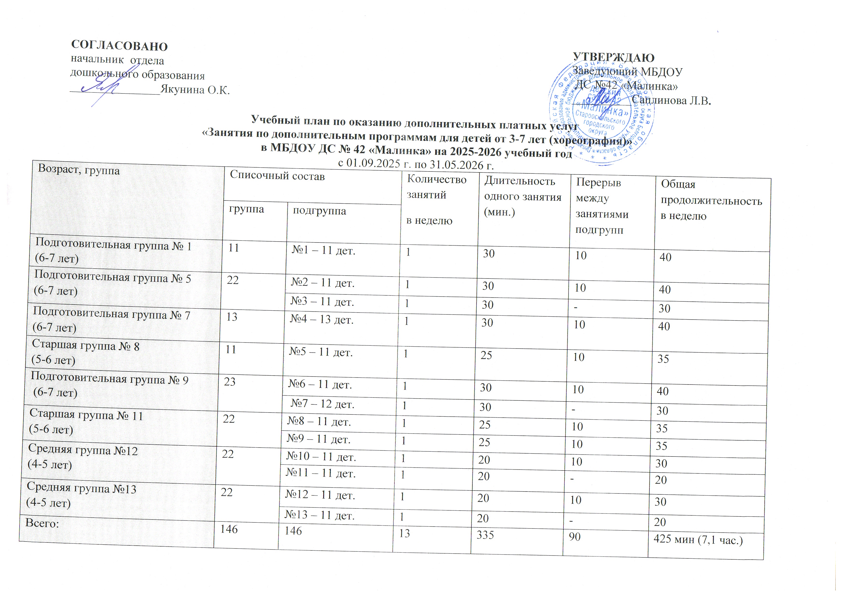 Учебный план ООД платных дополнительных образовательных услуг в МБДОУ ДС № 42 "Малинка" на 2025-2026 гг. (хореография) Скачать